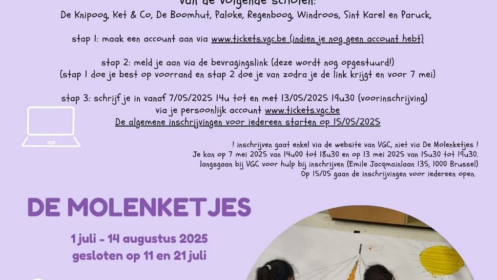 Tijdens de zomervakantie van 2025 organiseren De Molenketjes in samenwerking met de VGC Speelpleinen opnieuw speelpleinen op de locaties Ket & Co en De Knipoog.